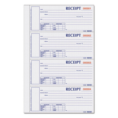 Hardcover Numbered Money Receipt Book, Three-part Carbonless, 6.78 X 2.75, 4/page, 200 Forms