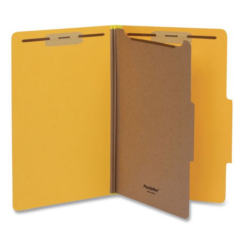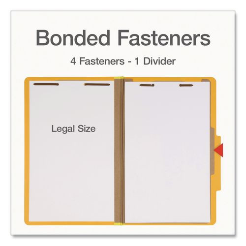 Heavy-Duty Pressboard Classification Folder, 2/5-Cut Tab, Expands 2", 1 Divider, 4 Fasteners, Legal Size, Yellow, 10/Box