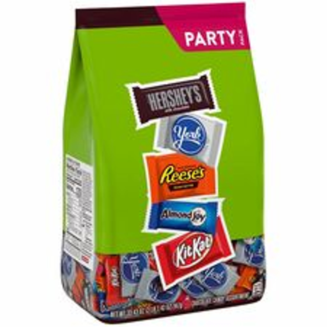 Assorted Chocolates Standup Bag contains snack-size Hershey's Milk Chocolate Bars, York Dark Chocolate Peppermint Patties, Reese's Peanut Butter Cups, Almond Joys and Milk Chocolate Kit Kats. Whether you're in the mood for minty dark chocolate, crispy milk chocolate wafers, peanut butter or just pure chocolate, this bag has something for everyone. Bring it to your next holiday party or pack in your child's lunches for a surprise they'll love.