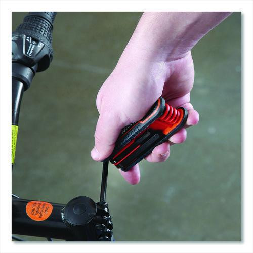 Hex Key Fold-up Tool Set, Two-piece, Metric/sae, Black-oxide/blue (sae), Black-oxide/red (metric)