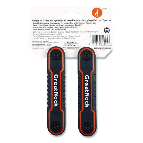 Hex Key Fold-up Tool Set, Two-piece, Metric/sae, Black-oxide/blue (sae), Black-oxide/red (metric)