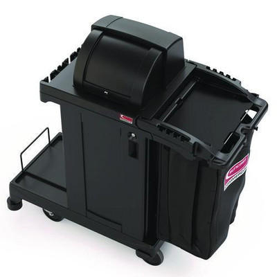 High Security Housekeeping Cart, Plastic, 1 Shelf, 3 Bins, 23.19 X 53.23 X 53.02, Black