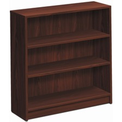 HON 1870 Series Bookcase | 3 Shelves | 36"W | Mahogany Finish - 3 Shelf(ves) - 36" Height x 36" Width x 11.50" Depth - Abrasion Resistant, Leveling Glide, Sturdy, Scratch Resistant, Spill Resistant, Stain Resistant - 42% Recycled - Laminate - Maho...
