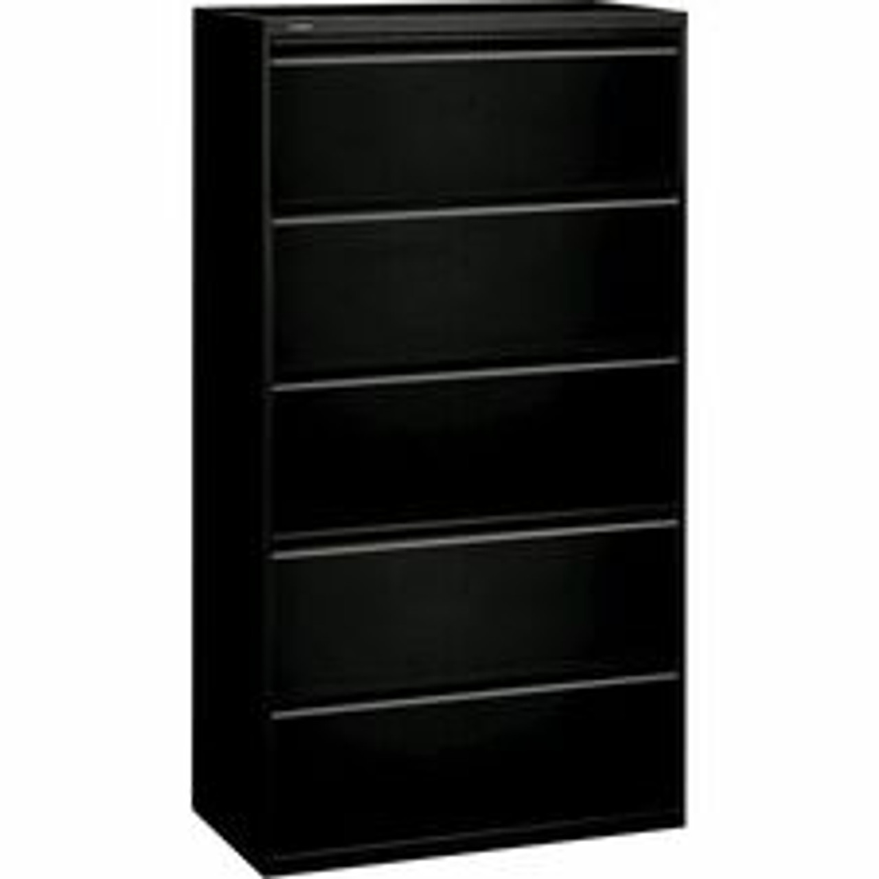 HON 800 Series Lateral File - 5-Drawer - 36" Width x 18" Depth x 64.2" Height - 2 x Shelf(ves) - 5 x Drawer(s) - Legal, Letter - Lateral - Security Lock - Black - Baked Enamel - Steel - Recycled