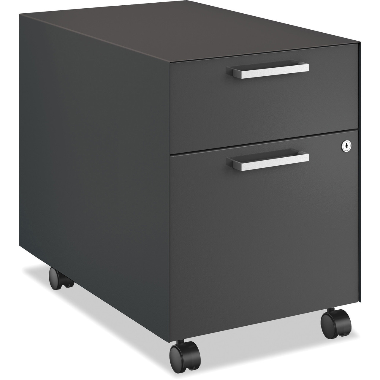 Mobile pedestal is part of the HON Fuse Collection that takes personal stowage to the next level with sizes and options that just make more sense for what's being stowed today. To operate at your best, you not only need quick access to your tech and work gear, but also your running shoes and protein bars. With clean, straightforward designs, Fuse storage pedestals, personal desktop trays and under-desk organizers work together to help increase efficiency and productivity for every work style. This mobile pedestal is designed to make the most of the compressed footprint of desking, benching and height-adjustable workstations. File drawer has high sides to allow front-to-back filing. Four casters allow you to move your storage wherever you need it. Rear casters swivel, and front casters are fixed. Standard core-removable locks make re-keying easy. Fuse furniture units are sold separately.