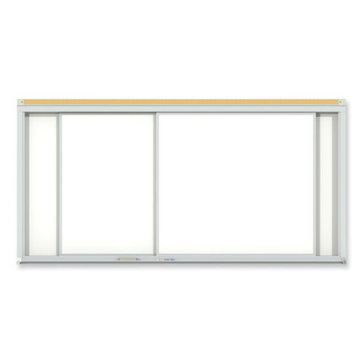 Horizontal Sliding Porcelain Magnetic Whiteboard, 72" X 48", White Surface, Anodized Aluminum Frame