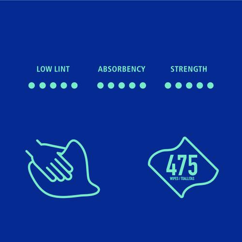 Hydrospun Wipers, 12 X 12, Blue, 475 Sheets/roll