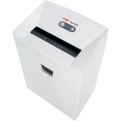 Robust, 4001 Cross-Cut P-4 Paper Shredder is designed to handle 15 to 18 users. Continuous operation and high-quality, solid steel cutting heads minimize downtime while shredding paper, staples, paper clips, credit cards and CD/DVDs. HIPAA-compliant, FACTA-compliant paper shredder is federally accepted to protect information against identity theft. Large, 16" feed opening and powerhouse, impact-resistant, removable, 44-gallon bin are perfect for high-volume shredding in large departments or offices. High-quality, wooden, easy-open cabinet is mounted on casters for easy mobility. Large but quiet 1-horsepower motor chews through 25 to 28 sheets of paper at once and up to 734 sheets per minute. Electronically controlled, transparent safety shield in the feed opening protects fingers and hands.