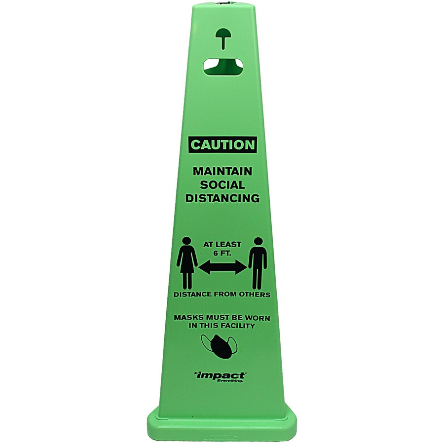 Impact TriVu Social Distancing 3 Sided Safety Cone - Print/Message "Caution Maintain Social Distancing, At Least 6 Ft Distance from Others, Masks Must Be Worn in this Facility" - 14.8" Width x 40" Height - Cone Shape - Three-sided, UV Protected - ...