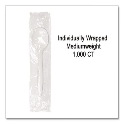 Individually Wrapped Mediumweight Cutlery, Soup Spoon, Plastic, White, 1,000/Carton