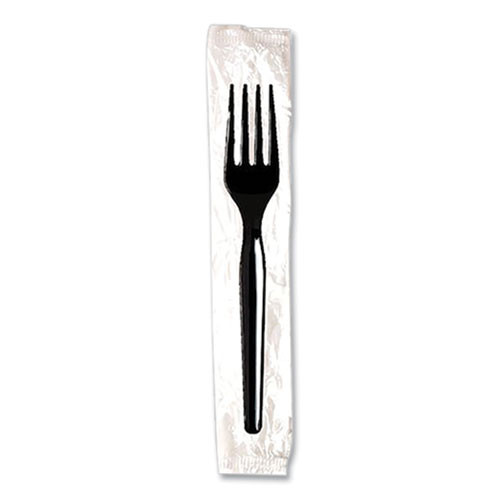 Individually Wrapped Mediumweight Polystyrene Cutlery, Fork, Plastic, Black, 1,000/Carton
