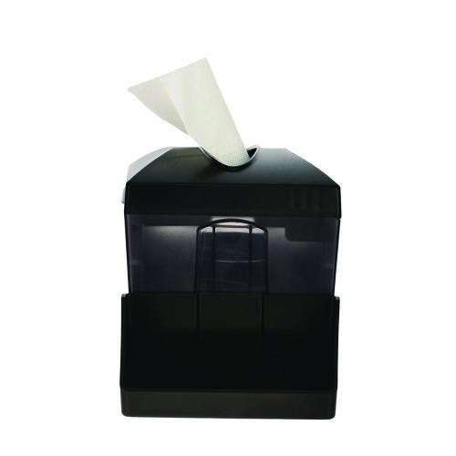 Interfold Table Top Dispenser Napkin Holder with Caddy, 6 x 14.17 x 6.5, Black