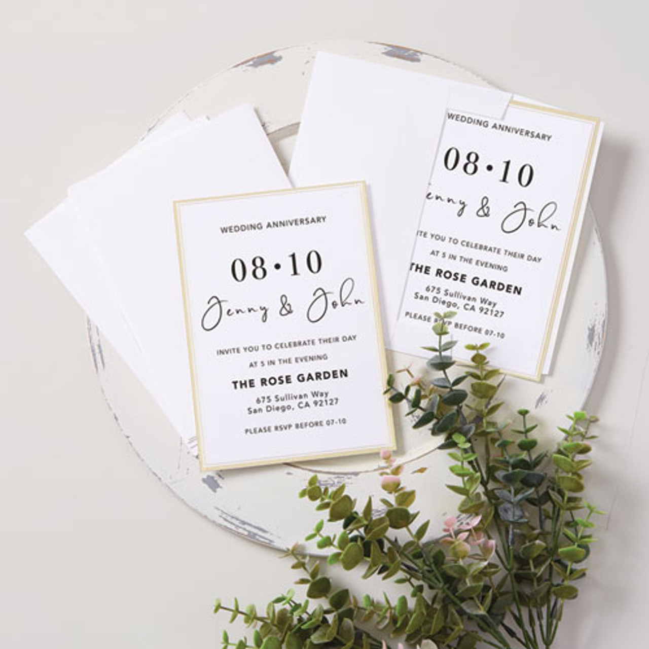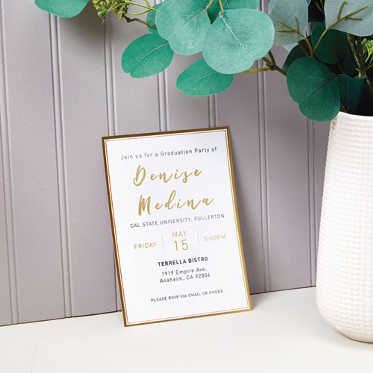 Invitation Cards With Metallic Border, Inkjet/laser, 80 Lb, 5 X 7, Matte White, 2 Cards/sheet, 15 Sheets/pack