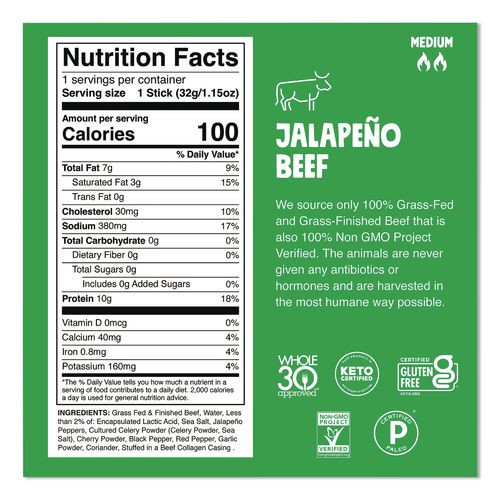 Jalepeno Beef Meat Stick, 1.15 oz Stick, 24/Box