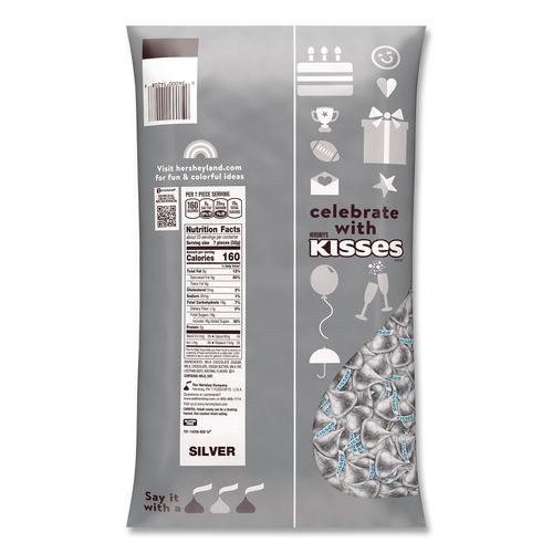 KISSES Milk Chocolate Candy, Silver Foils, 60 oz Bag