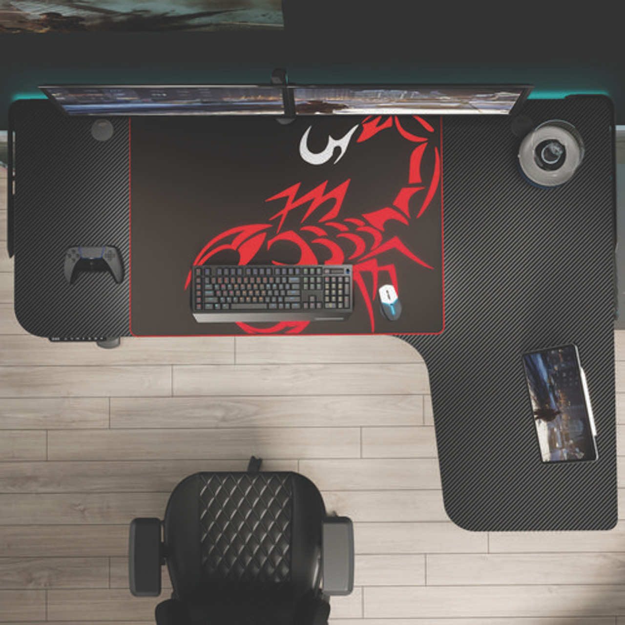 L-shaped Standing Desk, Right Desk, 60" X 43.69" X 29.88" To 48.38", Black