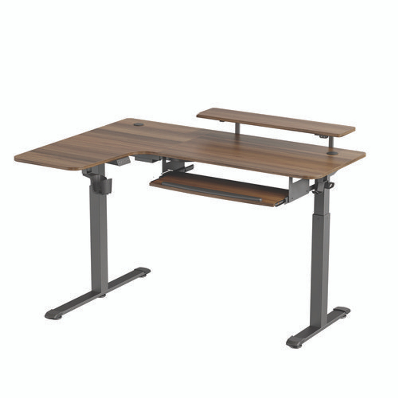 L-shaped Standing Desk With Keyboard Tray, Left Desk, 61.25" X 43.25" X 34.38" To 52.88", Walnut/black