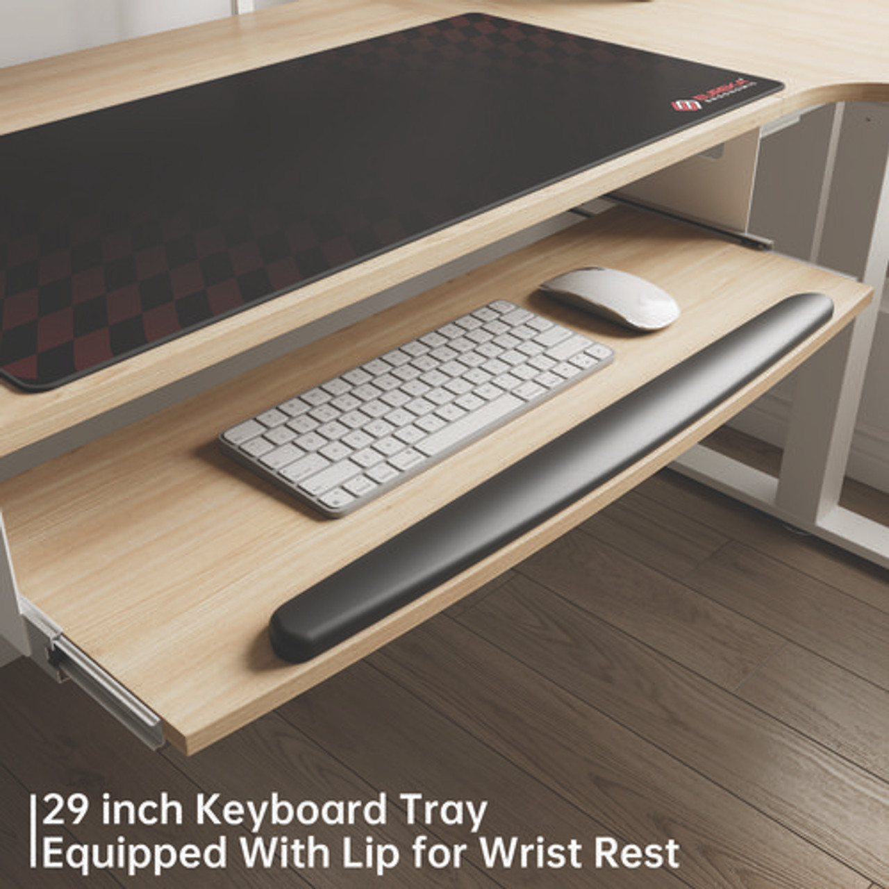 L-shaped Standing Desk With Keyboard Tray, Right Desk, 61.25" X 43.25" X 34.38" To 52.88", Maple White/white