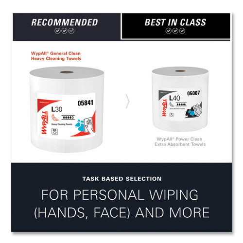 | Compliance Standards: | All Kimberly-Clark Professional* L30 Series White Wipers can be aerobically composted in municipal or industrial facilities in the United States and Canada by ASTM D6868-11. Check with your waste hauler to ensure your application and their composting |