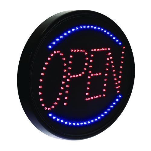 LED Oval Open Sign, 23 x 14, Black Frame, Blue/Red Graphics