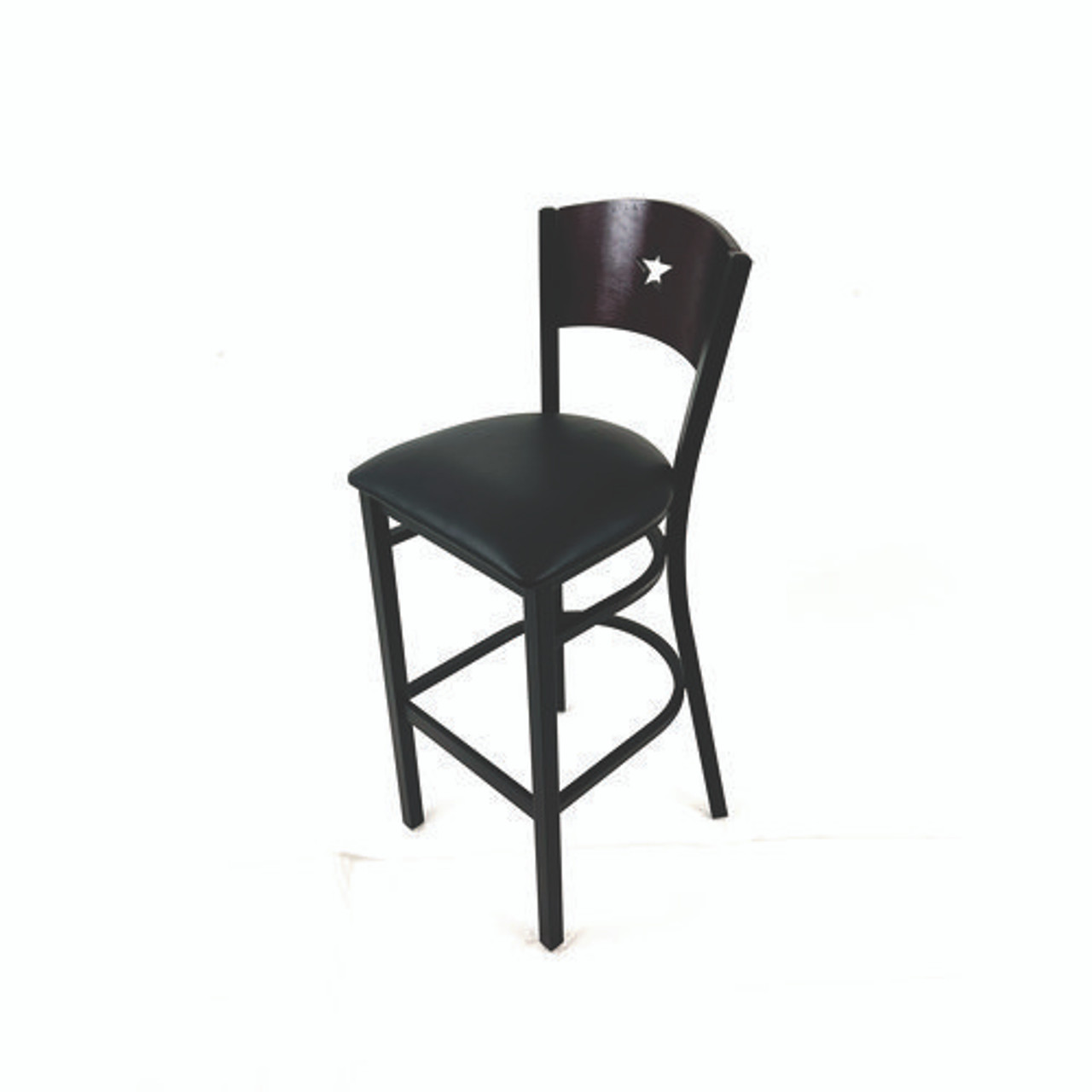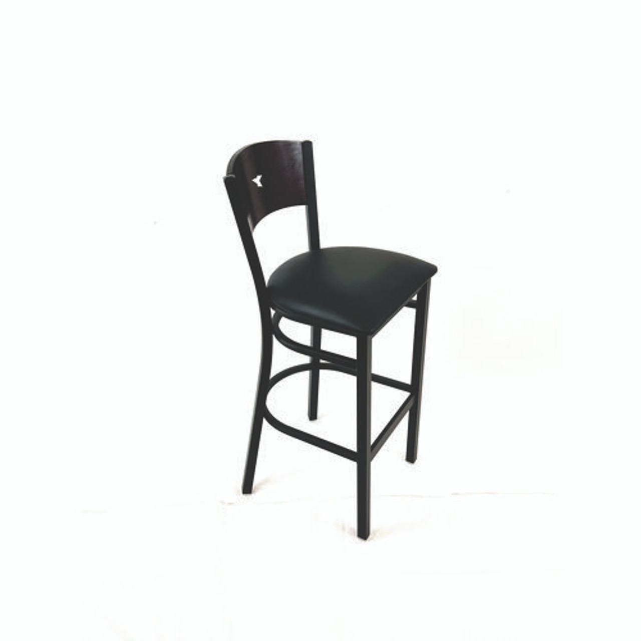 Liberty Series Barstool, Supports Up To 300 Lb, 28.5" Seat Height, Black Seat, Dark Mahogany Back, Black Base