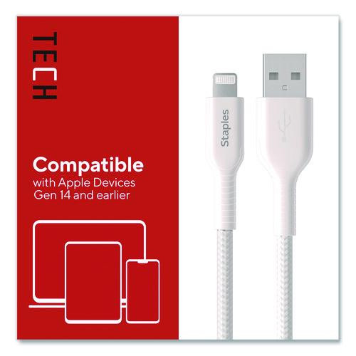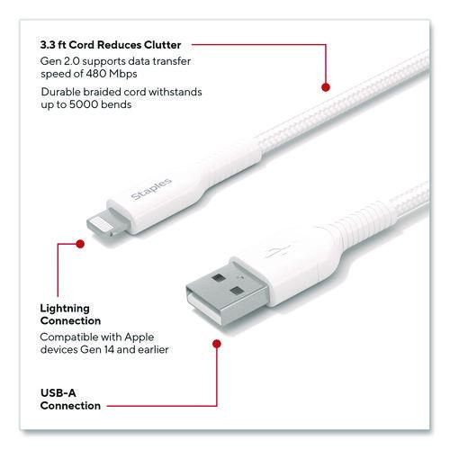 Lightning to USB-A Charging Cable, 3.3 ft, White, 2/Pack