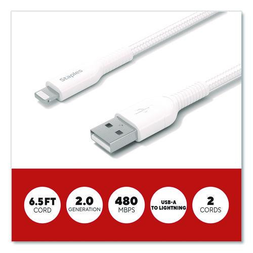 Lightning to USB-A Charging Cable, 6.6 ft, White, 2/Pack