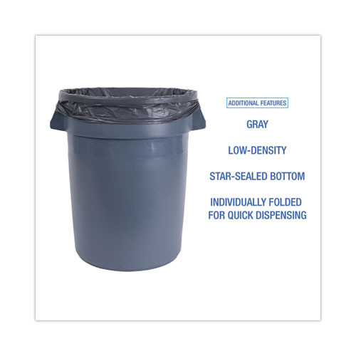 Linear Low Density Industrial Can Liners, 33 Gal, 1.3 Mil, 33 X 39, Gray, 100/carton