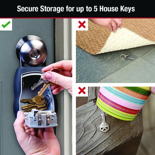 Locking Combination 5 Key Steel Box, 3 1/4w X 1 5/8d X 4h, Black/silver