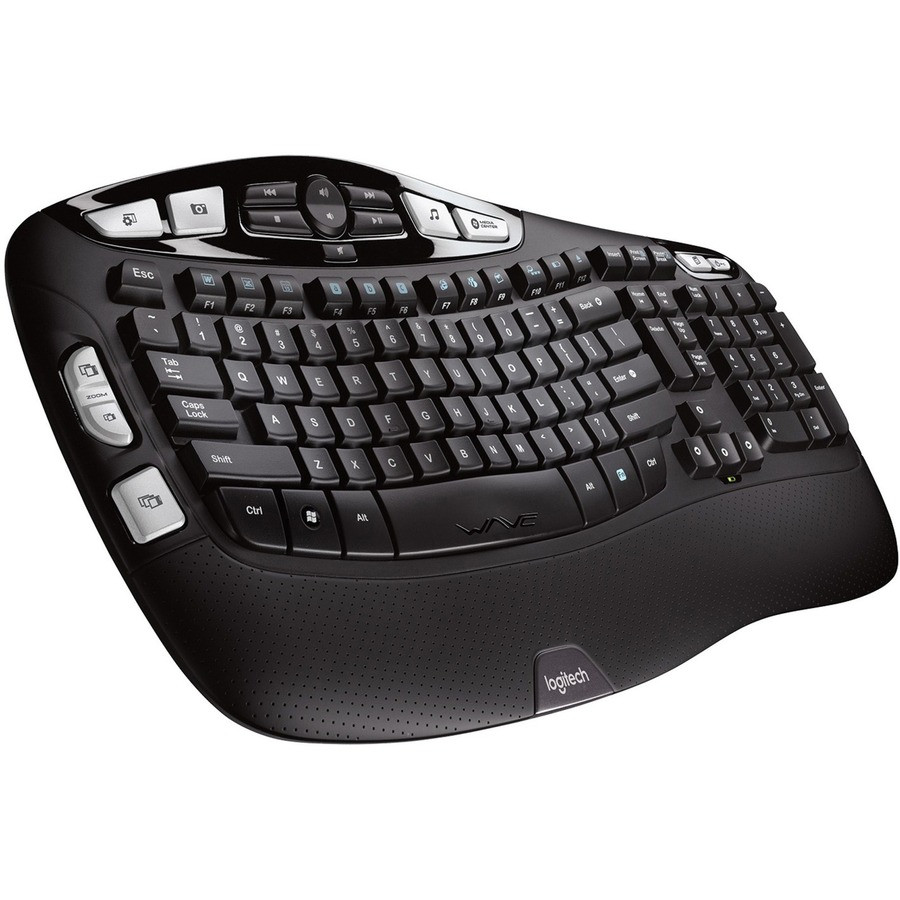 Wave-shaped keyboard features a cushioned palm rest for unmatched comfort. With its gradual wave-shaped contour, this key frame supports the varied lengths of your fingers. Three-year battery life means you won't spend your time tracking down new batteries. Connect with ease by simply plugging in the tiny receiver. Advanced 2.4 GHz wireless provides a long-range connection that virtually eliminates delays, dropouts and interference. Adjustable keyboard height offers three options for complete comfort. Convenient one-touch controls give you instant access to volume and media playback. Programmable keys can be easily customized to open your favorite applications, folders or web pages.