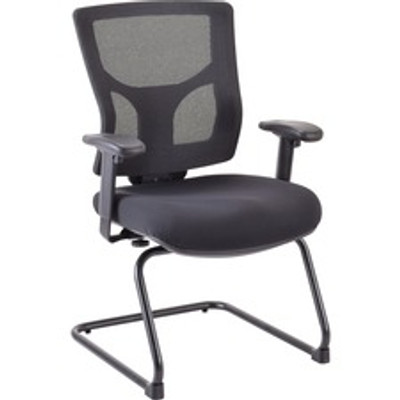 Lorell Conjure Guest Chair - Fabric, Polyurethane Foam Seat Material - Mesh Back Material - Mid Back - Sled Base - Black - 1 Each
