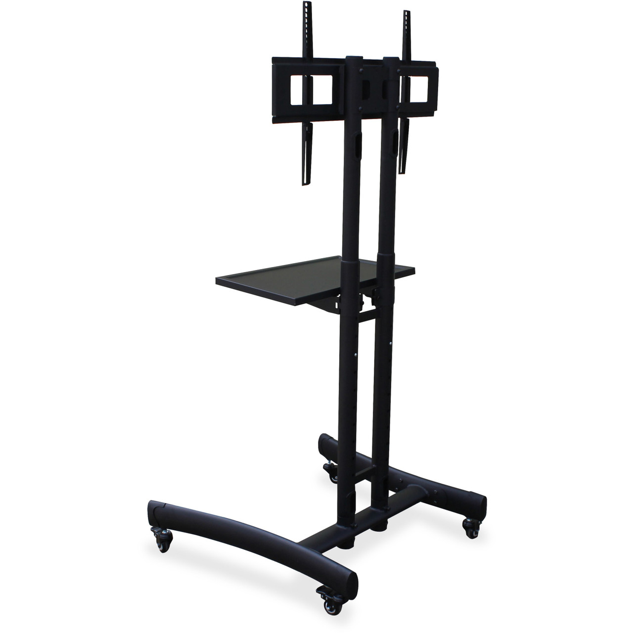 Lorell Flat Panel TV Cart - 100 lb Load Capacity - 4 Casters - 2.50" Caster Size - Steel - 29.50" Width x 28" Depth x 64" Height - Steel Frame - Black - 1 Each