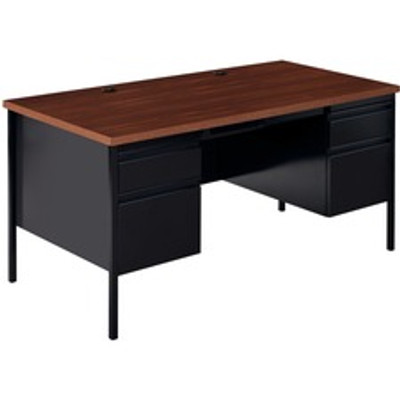 Lorell Fortress Series Double-Pedestal Desk - Rectangle Top - 60" Table Top Width x 30" Table Top Depth x 1.12" Table Top Thickness - 29.50" Height - Office, File - Assembly Required - Black Walnut, Laminated, Walnut - Steel - 1 Each