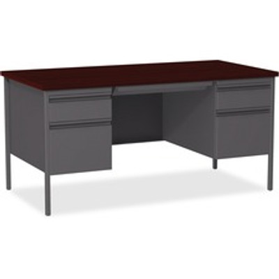 Lorell Fortress Series Double-Pedestal Desk - Rectangle Top - 60" Table Top Width x 30" Table Top Depth x 1.12" Table Top Thickness - 29.50" Height - Office, File - Assembly Required - Laminated, Mahogany - Steel - 1 Each
