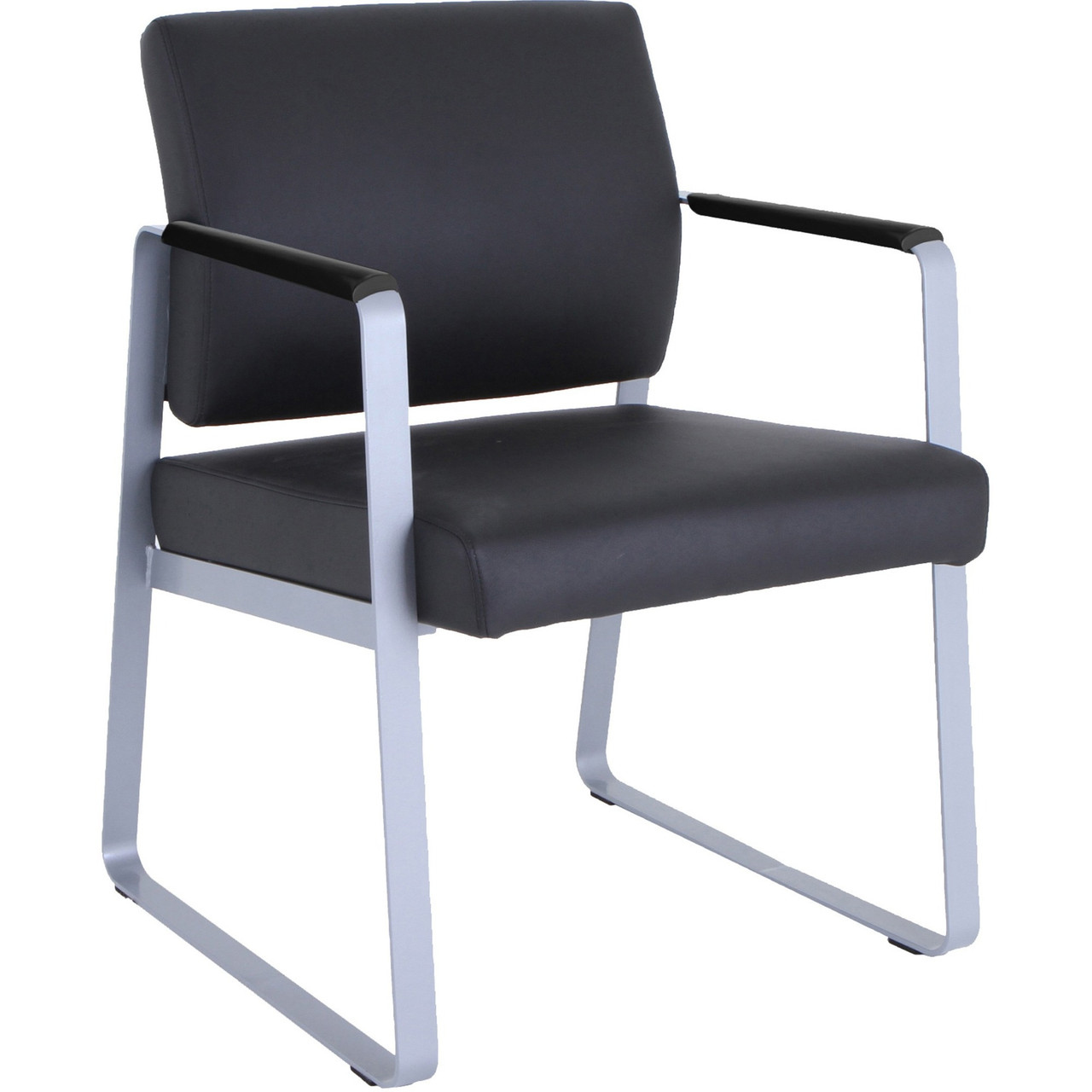 Lorell Healthcare Reception Sled Base Guest Chair - Silver Frame Color - Powder Coated Steel Frame Material - Black - Vinyl - 1 Each