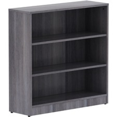 Lorell Laminate Bookcase - 36" Width x 12" Depth x 36" Height - 3 x Shelf(ves) - Sturdy, Laminated, Contemporary Style, Square Edge, Adjustable Feet - Weathered Charcoal - Medium Density Fiberboard (MDF) - Assembly Required
