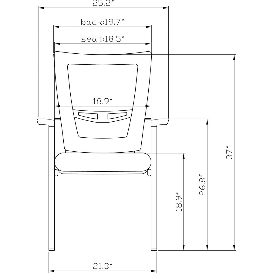 | Marketing Information: | Guest chair features a high-strength, elastic, nylon mesh back and fabric-upholstered seat. Arms are built into the powder-coated frame and covered with poly armrest. Weight capacity is 250 lb. |