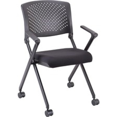 Lorell Upholstered Foldable Nesting Chairs with Arms - Black Seat Color - Fabric Seat Material - Black Back Color - Plastic Back Material - Metal Frame Material - 2 / Carton