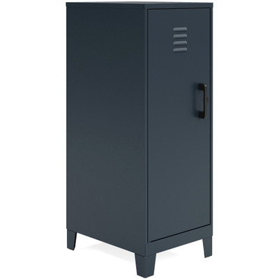 The versatile design of this personal locker makes it suitable for office and home use. Stylish, modern look will fit right in with your offices, classrooms, playrooms, basements and garages. The SOHO Locker adds a cool, industrial touch to your space. Sturdy and durable, welded steel construction provides long-lasting strength. Recycled content makes it an eco-friendly choice. Nonporous surface is easy to clean and disinfect. All you need is a damp cloth. Hinged door and a locking mechanism keep your belongings safe. Vented locking door allows airflow while protecting your privacy. Three built-in shelves are perfect for stashing schoolwork, organizing work supplies and putting away sporting equipment, toys and games. Each shelf can support up to 40 lb. to meet all your different needs. Built-in risers keep storage locker off your potentially damp floor. Locker ships fully assembled so you can get organized right away.