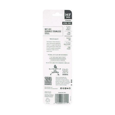 M/f 301 Stainless Steel Retractable Pen And Pencil Set, 0.7 Mm Black Pen, 0.5 Mm Hb Pencil, Stainless Steel Barrels