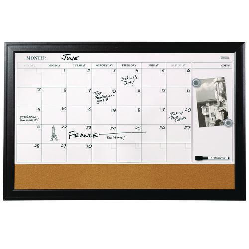 Magnetic Combination Board Calendar, Monthly Planning/scheduling, 35" X 23", Tan/white Surface, Black Wood Frame