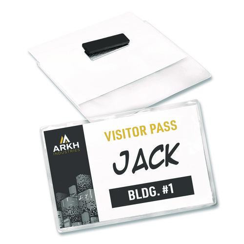 Magnetic Style Name Badge Kit, Horizontal, 4" X 3", White, 48/pack