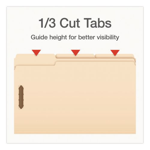 Manila Fastener Folders, 1/3-Cut Tab: Assorted, Expands 0.75", 2 Fasteners, Legal Size, 50/Box