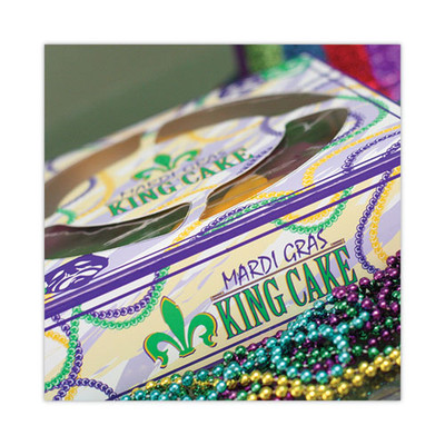 Mardi Gras King Cake Window Boxes, 19 x 14 x 3.5, Green/Purple/White, Paper, 50/Carton