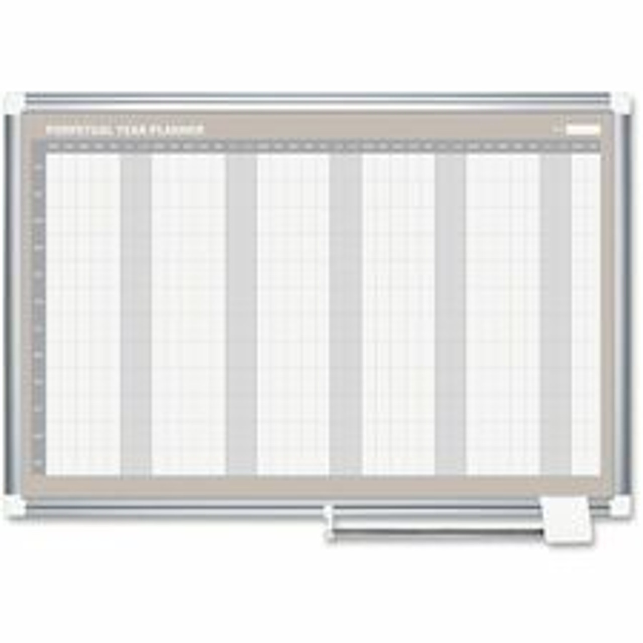 MasterVision Magnetic 12-Month Planner - Monthly - 12 Month - Silver Gray, White, Pale Gray - Aluminum, Lacquered Steel - 36" Height x 48" Width - Durable, Accessory Tray, Dry Erase Surface, Magnetic - 1 Each
