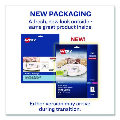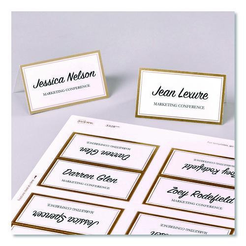 Matte White Metallic Gold Border Tent Cards, 3.5 X 2, 4 Cards/sheet, 20 Sheets/pack