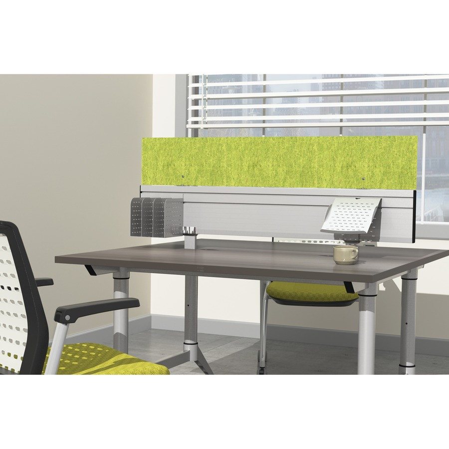 Accessorize your Safco EVEN Workstation with this EVEN Slatwall Divider. It helps to add more privacy between workstations (not included) and promote productivity. Use this divider to further accessorize your EVEN workstation with Safco Even Folder/Paper Sorter Tray, Phone/Tablet Support Tray and Pencil Holder (all not included). Each of these three accessories easily attaches to the Slat Wall Divider with a convenient hook. Divider is made of aluminum and is powder-coated for durability. It includes black endcaps and two mounting brackets.