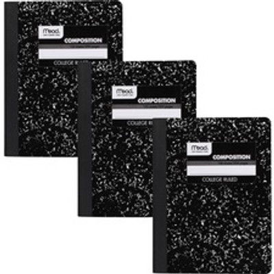 Mead College Ruled Comp Book - 100 Sheets - Sewn - 9 3/4" x 7 1/2" Sheet Size - 9" Height x 7" Width x 0.5" Length - White Paper - Black Marble Cover - Multiplication Table, Conversion Table, Sturdy Cover, Class Schedule - 3 / Pack