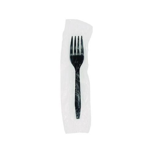 Meadoware Cutlery, Individually Wrapped, Medium Heavyweight Fork, Plastic, Black, 1,000/Carton