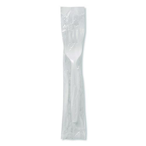 Mediumweight Polypropylene Cutlery, Individually Wrapped, Fork, Plastic, White, 1,000/Carton